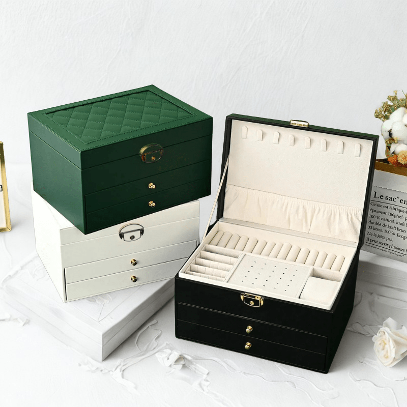 Découvrez nos grands coffrets à bijoux conçus pour les femmes qui aiment allier style et raffinement.