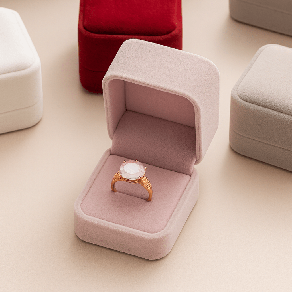La boîte est faite entièrement en velours, un matériau doux qui protège la bague contre les rayures et conserve son éclat au fil du temps.